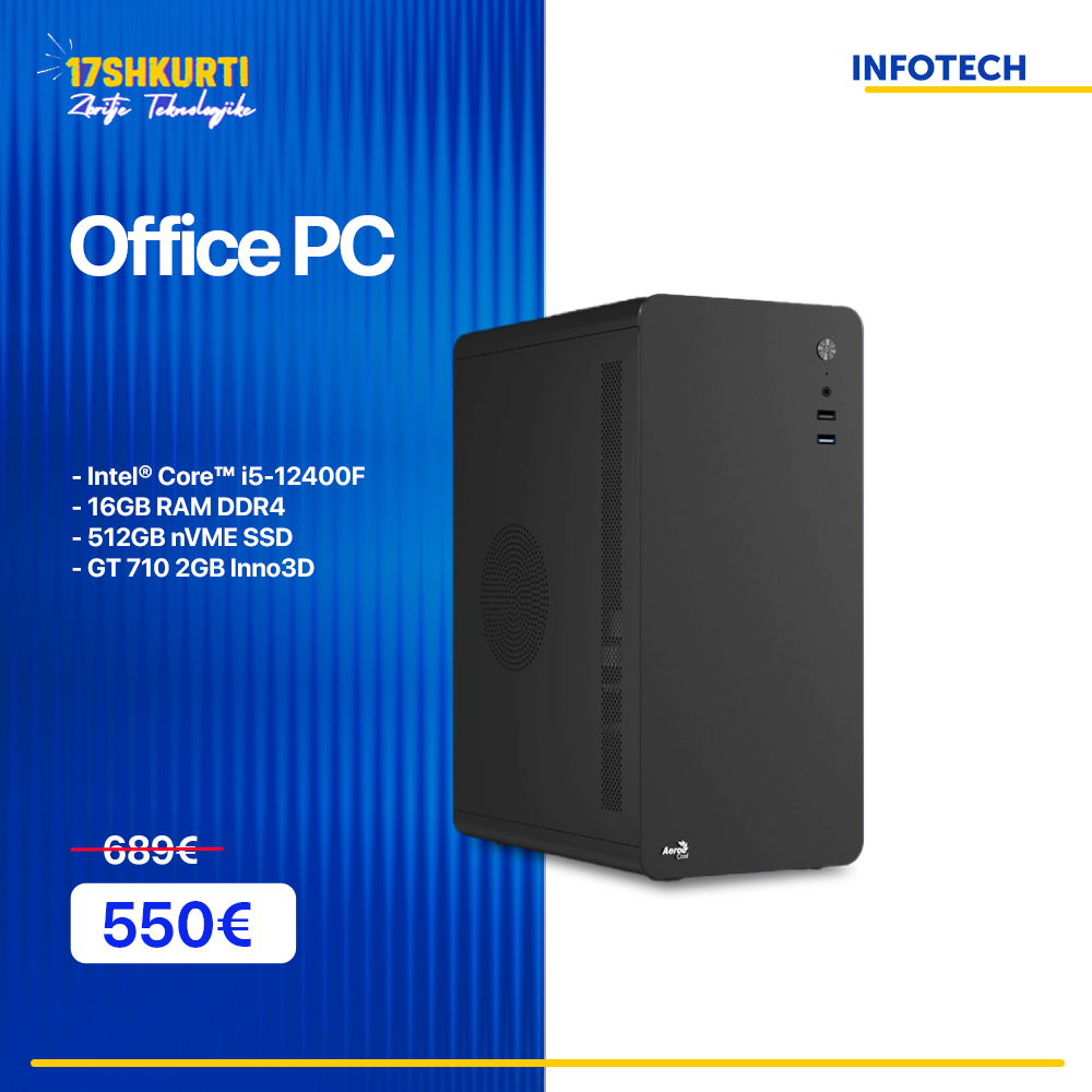 Office Pc - Kasë Kompjuteri PC AeroCool Geh Mini CS-110 v1,Intel® Core™ i5-12400F, 16GB RAM DDR4, 512GB nVME SSD,GT 710 2GB Inno3D