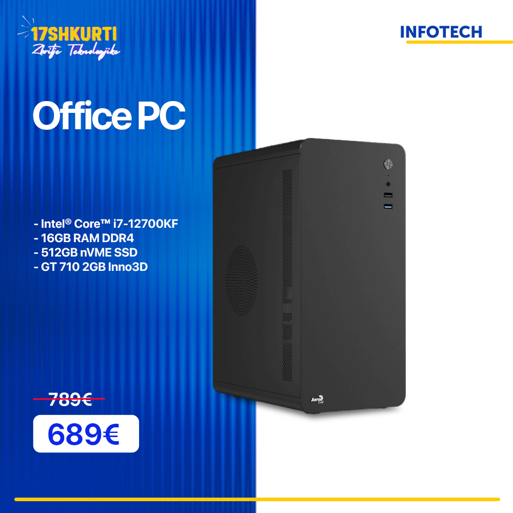 Office Pc - Kasë Kompjuteri PC AeroCool Geh Mini CS-110 v1,Intel® Core™ i7-12700KF, 16GB RAM DDR4, 512GB nVME SSD,GT 710 2GB Inno3D