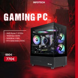 Gaming PC - Kasë Kompjuteri PC Thermaltake View 170 TG Midi Tower “ARGB” Black, AMD Ryzen 7-5700x , 16GB RAM DDR4, 500GB M.2 SSD, RTX 5050 8GB ZOTAC