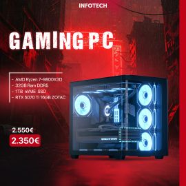 Gaming PC - Kasë Kompjuteri PC AeroCool Geh Midi P500C-G-WT-V1, AMD Ryzen 7-9800X3D , 32GB RAM DDR5, 1TB nVME SSD, RTX 5070 Ti 16GB ZOTAC