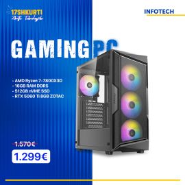 Gaming PC - Kasë Kompjuteri PC Antec Geh Mid AX61 Elite,AMD Ryzen 7-7800X3D, 16GB RAM DDR5, 512GB nVME SSD, RTX 5060 Ti 8GB ZOTAC
