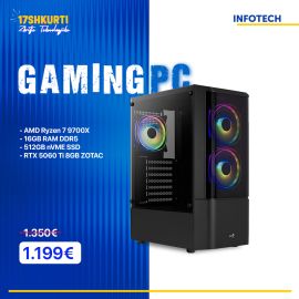 Gaming PC - Kasë Kompjuteri PC AeroCool Geh Midi Quantum Mesh v3 Black ,AMD Ryzen 7 9700X, 16GB RAM DDR5, 512GB nVME SSD, RTX 5060 Ti 8GB ZOTAC Twin