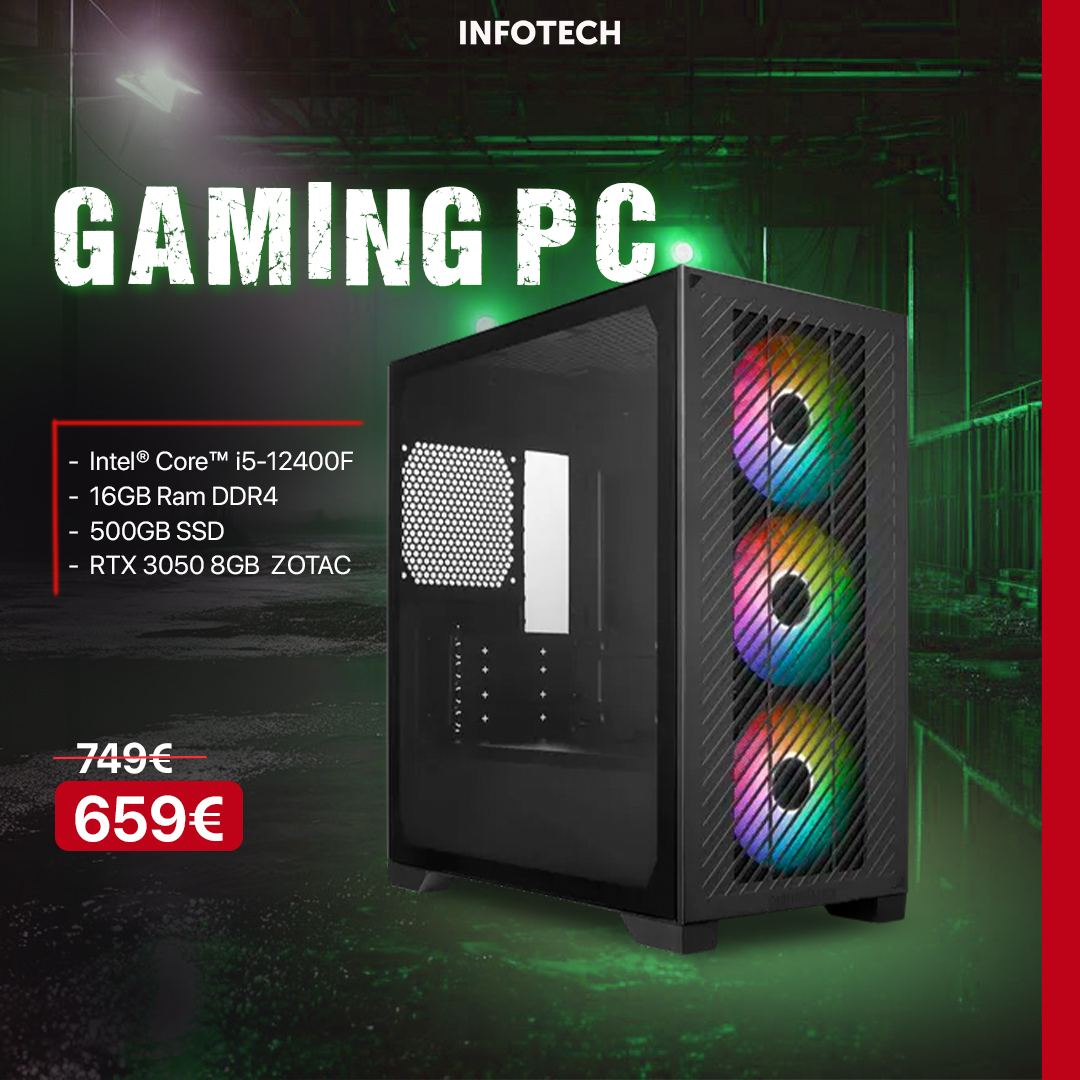 Gaming PC - Kasë Kompjuteri PC CoolerMaster Geh Elite 301,Intel® Core™ i5-12400F, 16GB RAM DDR4, 500GB SSD, RTX 3050 8GB Zotac ECO