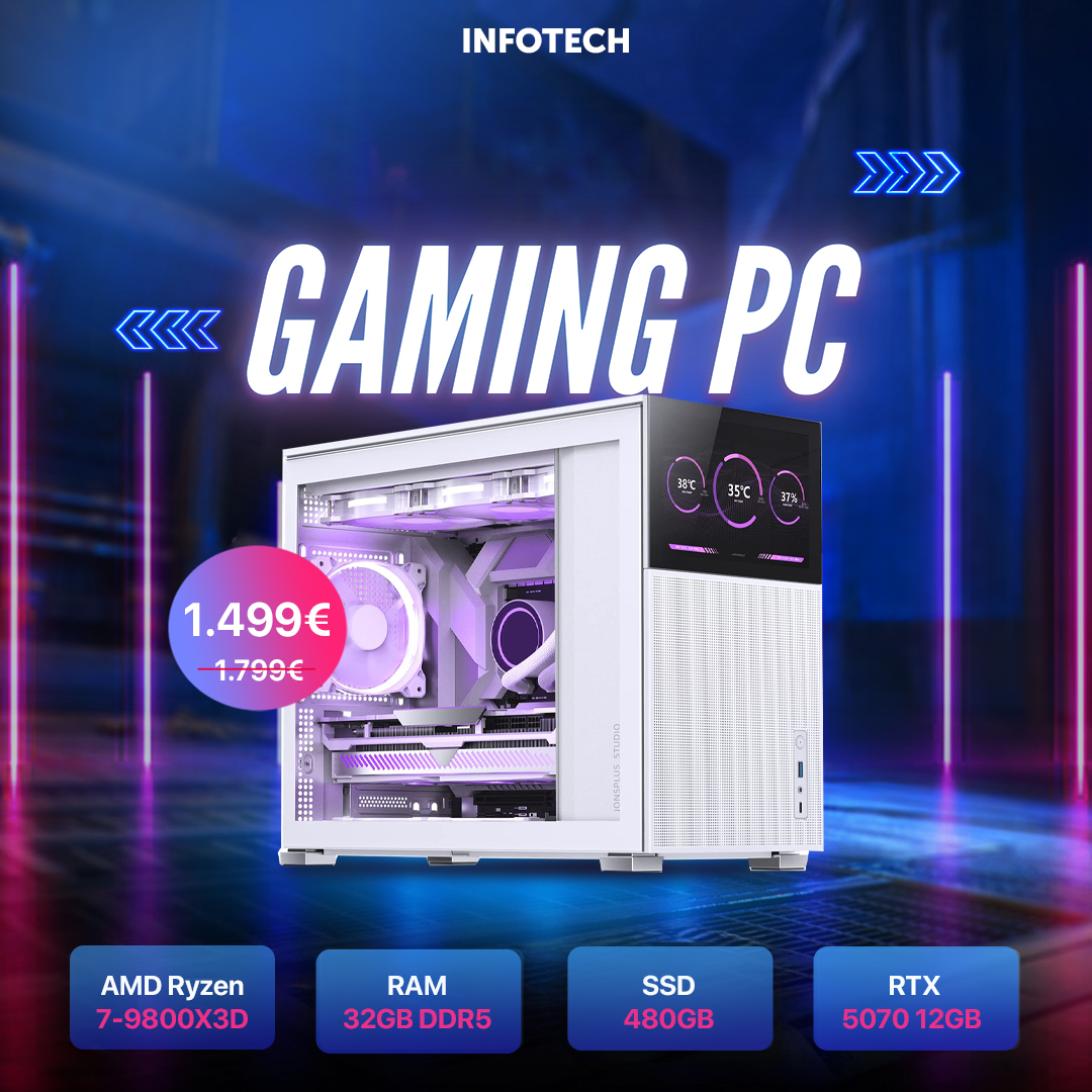 Gaming PC - Kasë Kompjuteri PC Jonsbo D31 Screen Micro-ATX White, AMD Ryzen 7-9800X3D ,32GB Ram DDR5 , 480GB SSD , RTX 5070 12GB ZOTAC Twin Edge