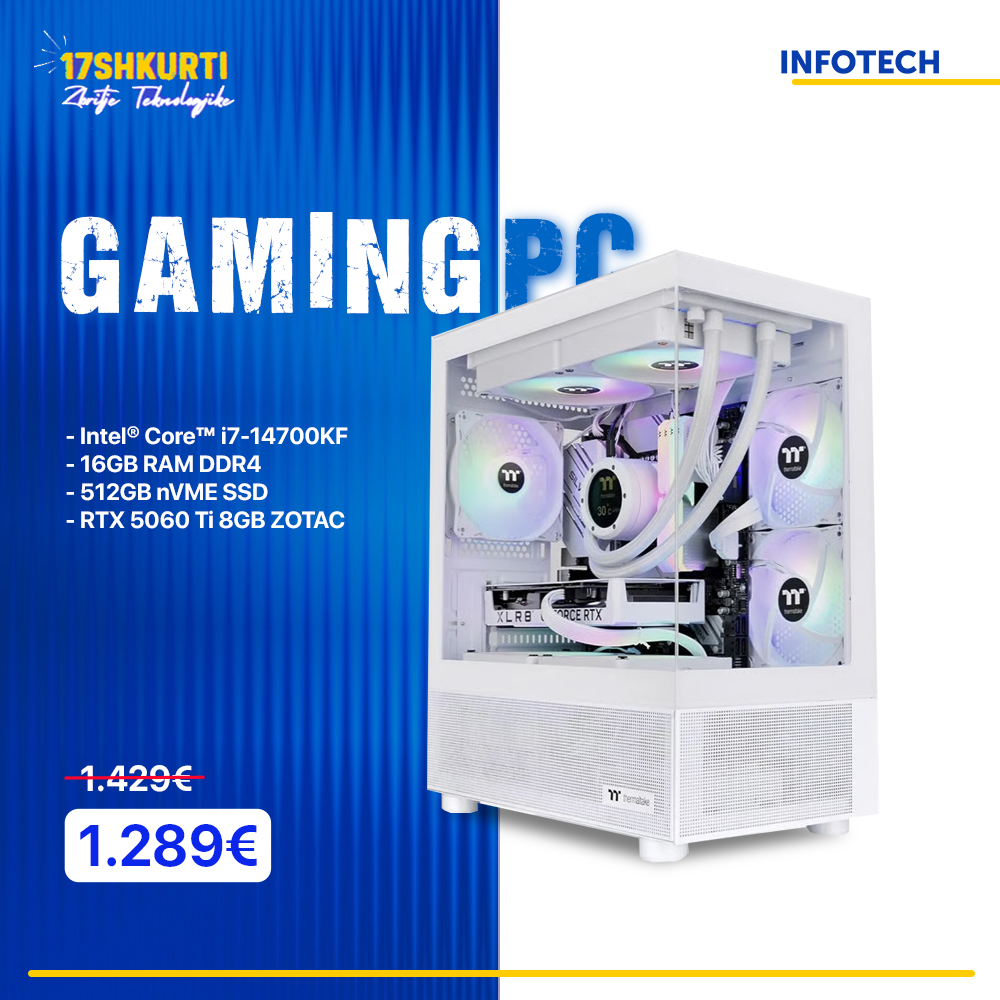 Gaming PC - Kasë Kompjuteri PC Thermaltake View 170 TG White, Intel® Core™ i7-14700KF, 16GB RAM DDR4, 512GB nVME SSD, RTX 5060 Ti 8GB ZOTAC Twin Edge