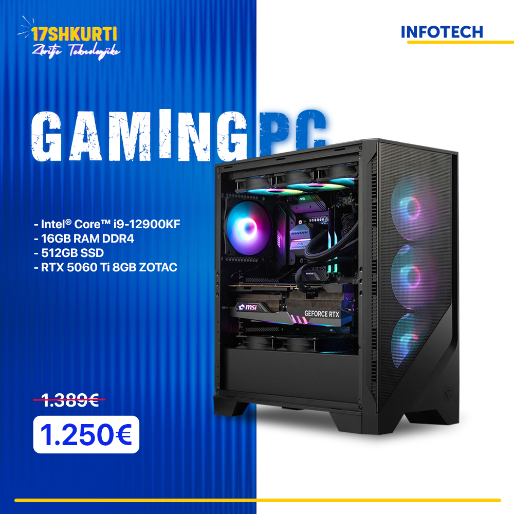 Gaming PC - Kasë Kompjuteri PC MSI GEH Midi MAG Forge 320R Airflow Black, Intel® Core™ i9-12900KF, 16GB RAM DDR4, 512GB nVME SSD, RTX 5060 Ti 8GB ZOTAC Twin Edge