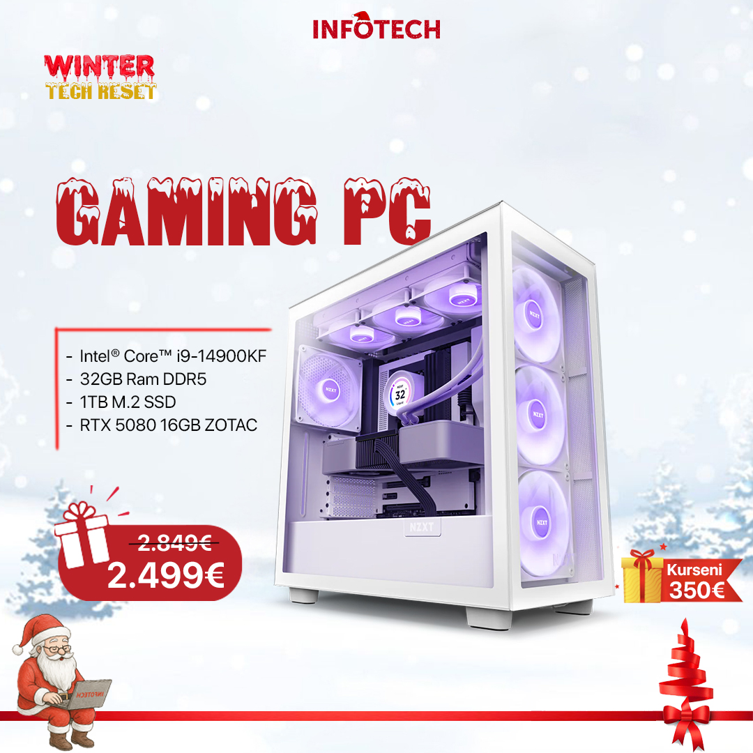 Gaming PC - Kasë Kompjuteri PC NZXT H7 Elite RGB White, Intel® Core™ i9-14900KF, 32GB RAM DDR5, 1TB M.2 SSD, RTX 5080 16GB ZOTAC