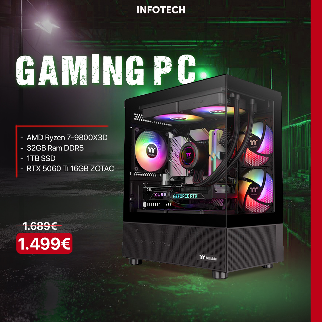 Gaming PC - Kasë Kompjuteri PC Thermaltake View 170 TG Midi Tower “ARGB” , AMD Ryzen 7-9800X3D, 32GB RAM DDR5, 1TB SSD, RTX 5060 Ti 16GB ZOTAC Twin Edge