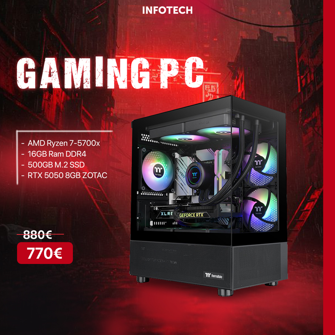 Gaming PC - Kasë Kompjuteri PC Thermaltake View 170 TG Midi Tower “ARGB” Black, AMD Ryzen 7-5700x , 16GB RAM DDR4, 500GB M.2 SSD, RTX 5050 8GB ZOTAC