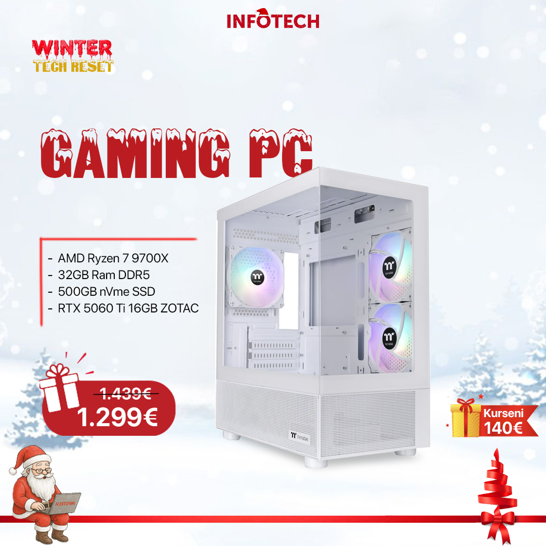 Gaming PC - Kasë Kompjuteri PC Thermaltake View 170 TG Midi Tower “ARGB Snow” White, AMD Ryzen 7 9700X , 32GB RAM DDR5, 500GB SSD, RTX 5060 Ti 16GB ZOTAC