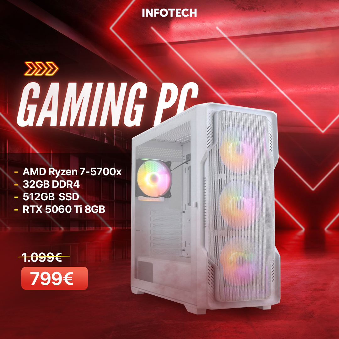Gaming PC - Kasë Nanoxia Geh MIDI DS-9 ARGB ,AMD Ryzen 7-5700x , 32GB DDR4 , 512GB SSD, RTX 5060 Ti 8GB ZOTAC Twin